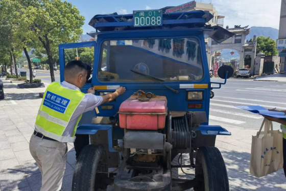 为贯彻落实我局《关于开展全市农业安全生产大排查、大整治、保安全百日攻坚专项行动的通知》(榕农综明传〔2022〕29号)和《关于开展全市农机安全生产大排查、大整治、保安全百日攻坚专项行动的通知》(榕农综明传〔2022〕30号)要求,加强上道路行驶拖拉机管控,全面排查安全风险和事故隐患,做好节日农机安全生产工作,有效防范和遏制各类农机事故发生。2022年9月7日,麻豆成人視頻-成人視頻 四级调研员林敏带领局农机处有关人员赴罗源县联合县农业农村局和县公安交警大队开展路面农机安全检查,检查了号牌为闽01-D0088、闽01-31641和豫07/A5970等3台拖拉机,发现闽01-D0088和闽01-31641多功能拖拉机车厢档板加高、未粘贴反光条,现场拆除加高档板并粘贴了反光条整改到位,挂外省号牌豫07/A5970拖拉机已被罗源交警大队暂扣,牌证的真假待进一步核查。