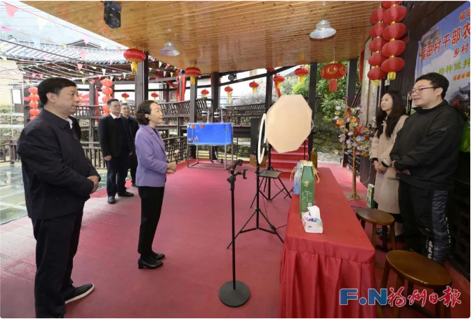 郭宁宁察看小箬乡福田村村干部直播带货情况。