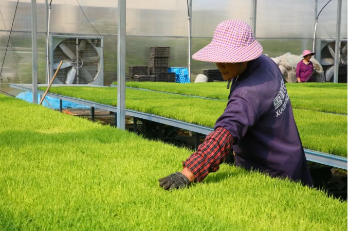 随着智能化育秧技术的推广和秧苗质量的提升,近年来,雪美农业智慧化育秧大棚不仅为自己的合作社育秧,还为首占、玉田、鹤上、古槐、江田、金峰等周边乡镇农户提供标准规范的社会化服务,为大家全程提供早稻的选种和代育工作,不仅让农户省心省力,还确保了秧苗的优质高产,为粮食稳产增收提供了有力保障。