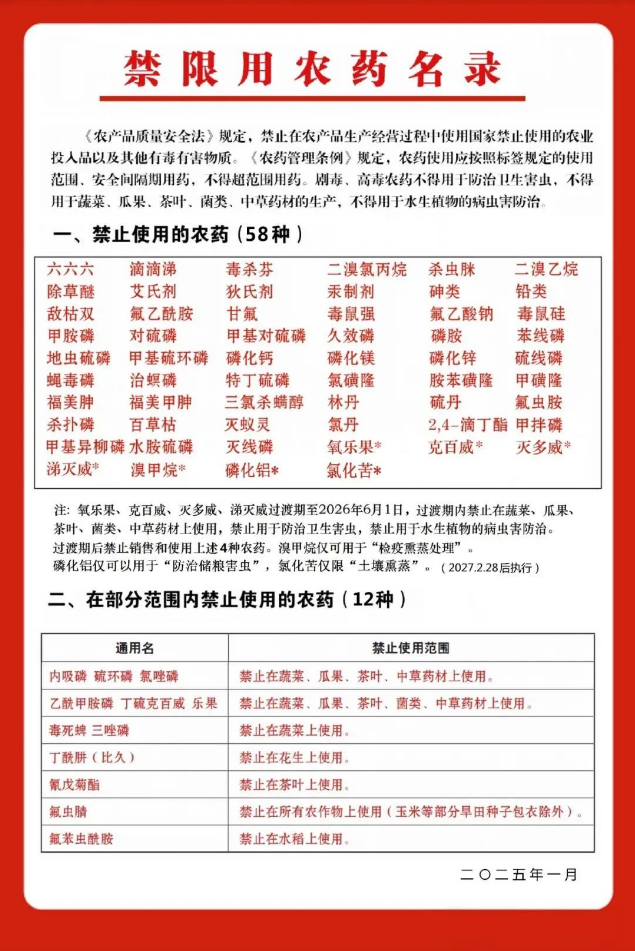 如果不清楚是否是禁限药,大家可以上网查询国家禁用农药清单发现违法销售使用请拨打当地农业执法部门举报电话进行举报。