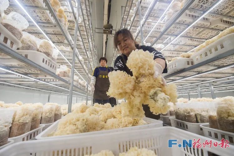 罗源起步镇菇农正在菇棚里收菇。郑帅 摄
