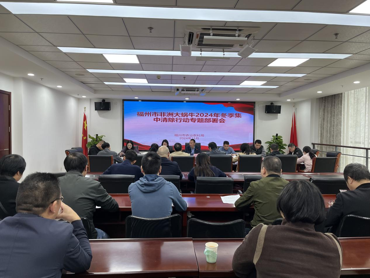 召开福州市非洲大蜗牛2024年冬季集中清除行动专题部署会,局党组成员、副局长鲍瑞坊主持,市住建局、林业局、园林中心等相关部门、局科教处、乡村振兴发展指导处、植保站、生态办,各县(市)区农业农村局、高新区农林水局分管领导及相关工作人员参加。
