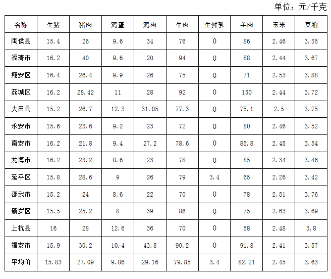 福建省2025年第12周畜产品及饲料集市价格周报
