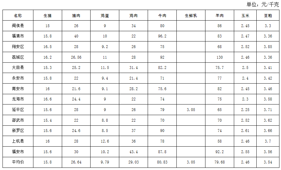 福建省2025年第17周畜产品及饲料集市价格周报