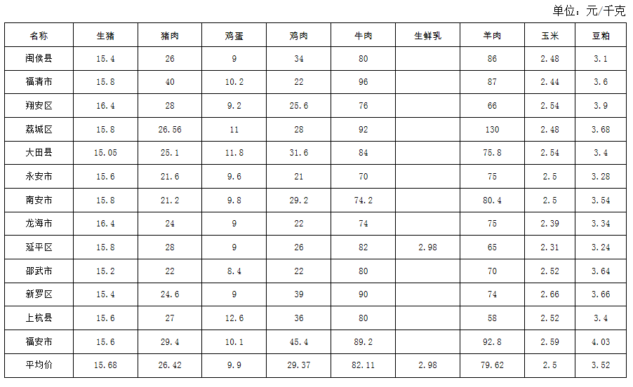 福建省2025年第19周畜产品及饲料集市价格周报
