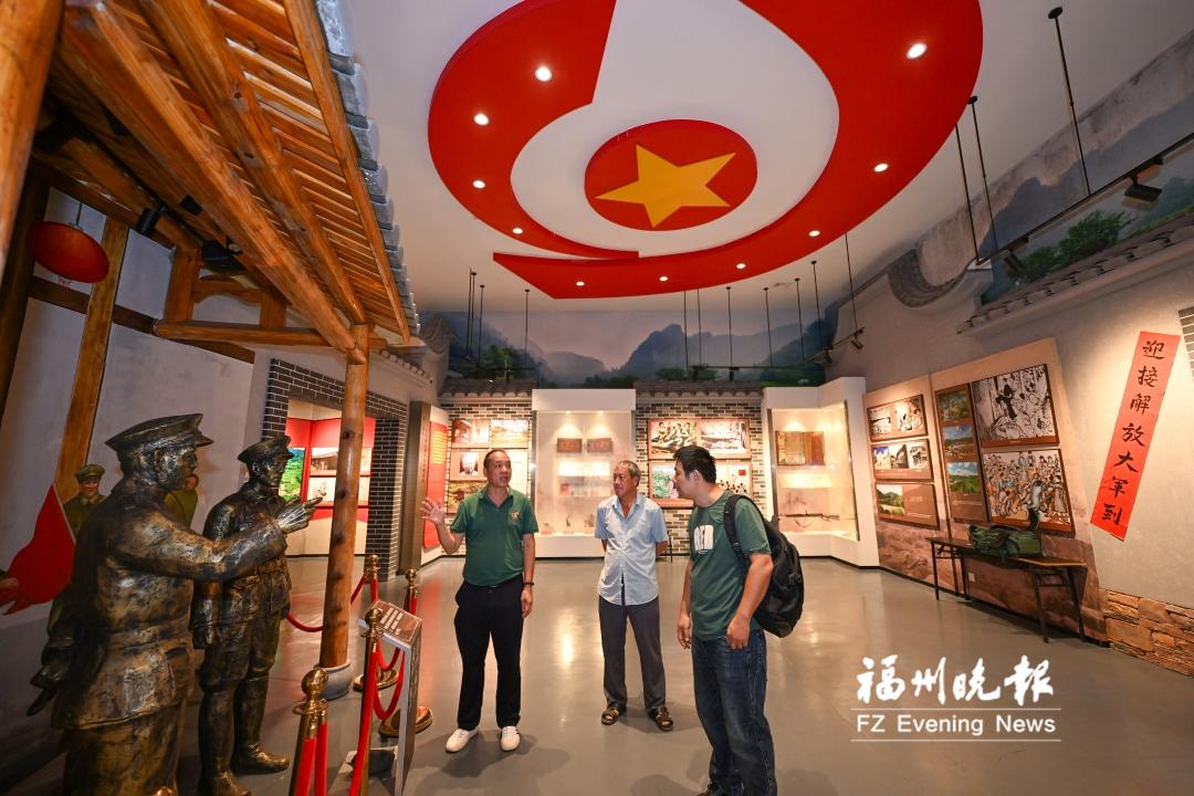历经两度提升改造的上演革命历史陈列馆内,三大展区以时间为轴,集中展现上演村人民游击战争发展的轨迹与闽清波澜壮阔的革命画卷,建立游击根据地的艰难历史、土地革命战争与抗日战争的烽火、解放战争的凯歌,无不令人心潮澎湃,坚定游客们传承红色基因、赓续红色血脉的决心。