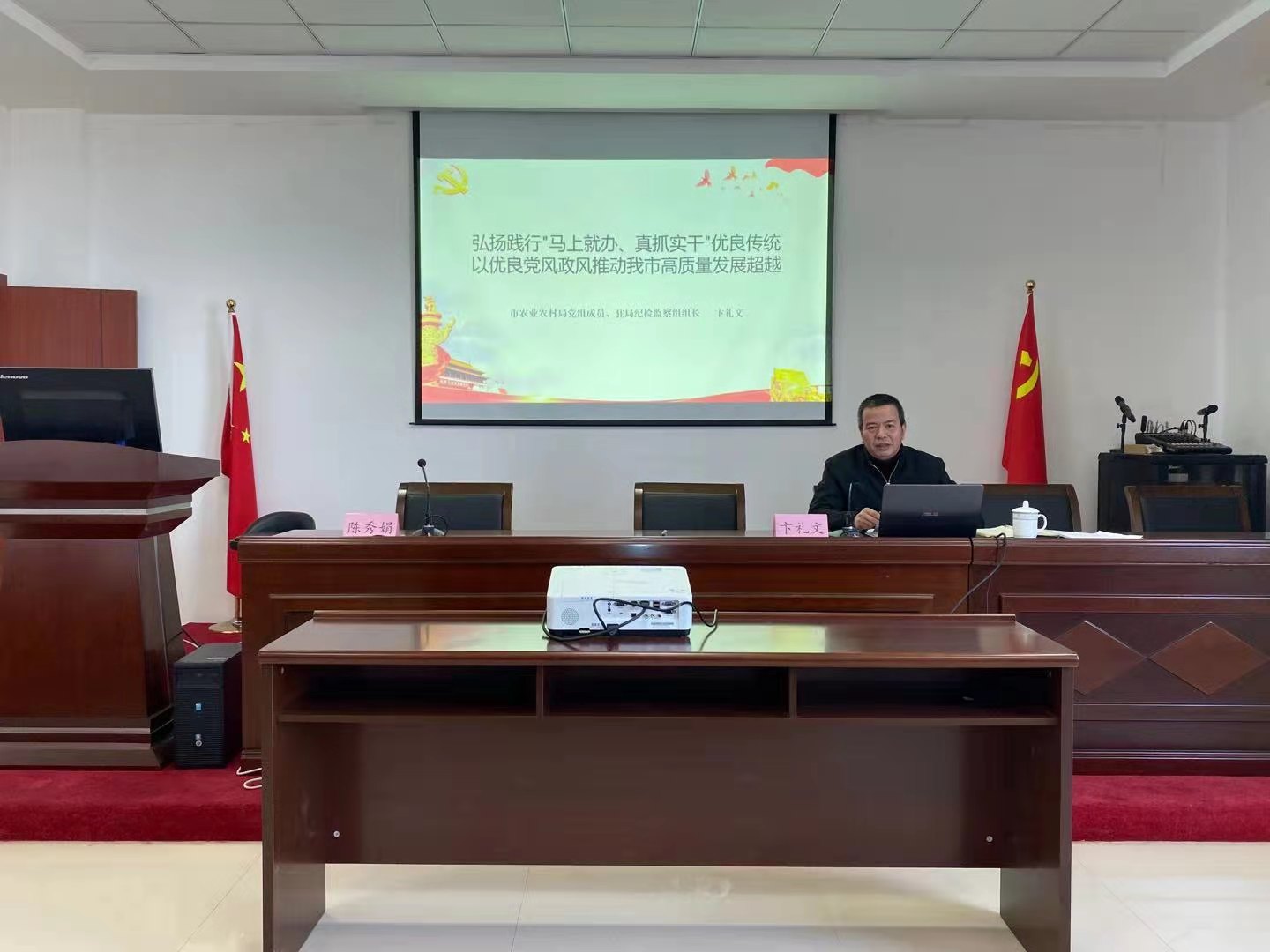 为深入学习贯彻党的十九大精神,按照市委市政府关于整治工作作风突出问题的统一部署, 1月14日上午,市农业农村局党组成员、派驻纪检监察组组长卞礼文赴市菜科所给全所干部职工作 “弘扬践行‘马上就办、真抓实干’优良传统以优良党风政风推动我市高质量发展超越”的专题党课。会议由福州市蔬菜科学研究所所长陈秀娟主持,全体干部职工参加。