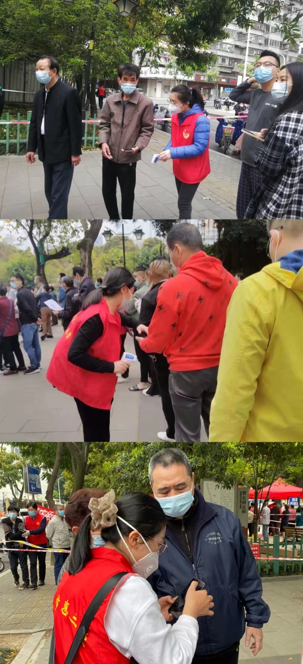 “请大家佩戴好口罩,出示健康码,扫二维码提前预约,有序排队,谢谢大家配合!您是黄码请到指定地点检测做好居家隔离……3月20日上午8点半,分派至华美社区的党员志愿者陈成璟、杜文丽、苏娟经过上岗培训,立刻按照社区工作要求,做好防护措施后前往核酸检测一线,积极帮助社区开展工作。他们耐心指导、答询、组织居民有序采样,手把手教部分老年人用手机扫码登记。除了“嘴不停”,志愿者来回在队伍前后穿梭,提醒市民保持安全距离。