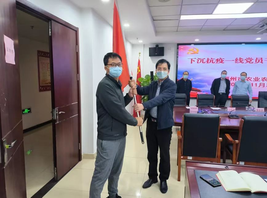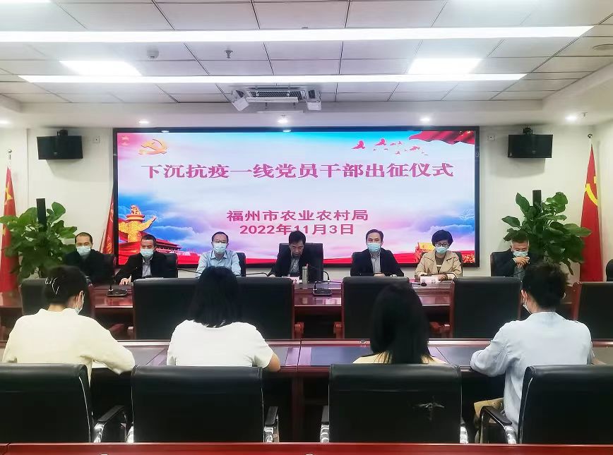 为落实党中央和省、市委疫情防控决策部署,进一步号召广大党员干部众志成城,共克时艰,坚决打赢疫情防控阻击战歼灭战,让党旗高高飘扬在防疫前线。113日下午,福州农业农村局隆重举行下沉闽侯县抗疫党员干部先锋队授旗出征仪式,派出75名党员干部支援闽侯县祥谦镇疫情防控工作,用实际行动彰显党员本色和三农干部的使命担当。党组书记、林健主持出征仪式并讲话局领导班子,机关各处室、各直属单位下沉抗疫一线党员干部参加仪式。