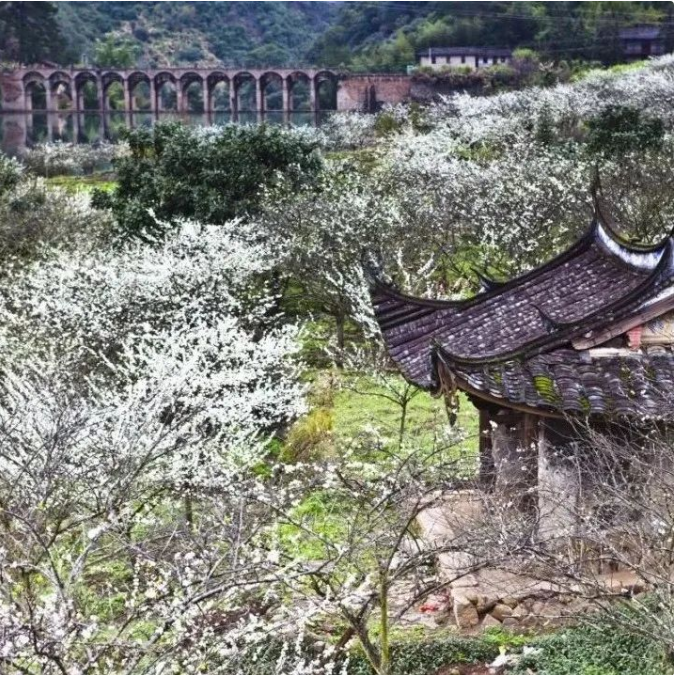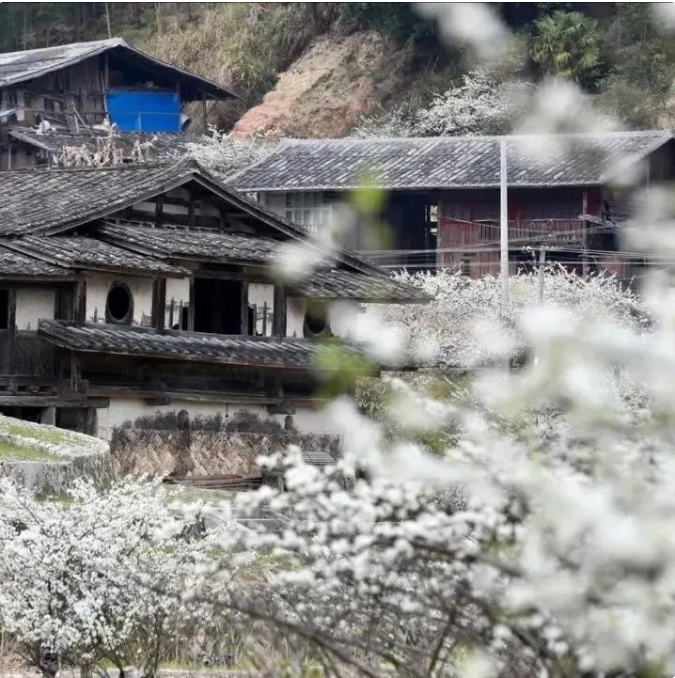 盖洋乡盖洋村也是热门赏花地。始建于清道光年间的三对厝附近,大片李花盛放,为这座古老的建筑增添了别样的生机与浪漫,洁白的李花簇拥在古厝的墙角、檐下,与古厝那斑驳的墙壁、古朴的瓦片相互映衬,别有诗意。