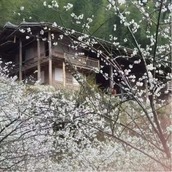 作为每年的赏花胜地,嵩口镇大喜村的李花景观尤为壮观。李花环绕大喜水库,绵延近千亩,花朵倒映水面,如诗如画。村内保留了原生态田园风光,游客观赏完李花后还可入住当地特色民宿。